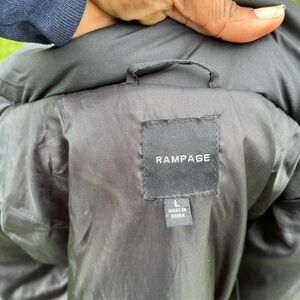 Experience warmth and style with this Rampage puffer jacket, featuring a sleek black design and a luxurious faux fur hood. Its quilted pattern and fitted silhouette ensure both comfort and a modern look, making it an ideal choice for cold weather.