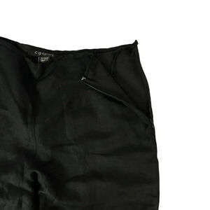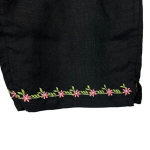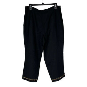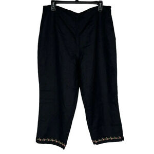 Womens Black Rayon Linen Capri Crop Pants Plus Sz 16 Embroidered Floral CG Sport