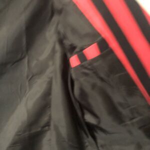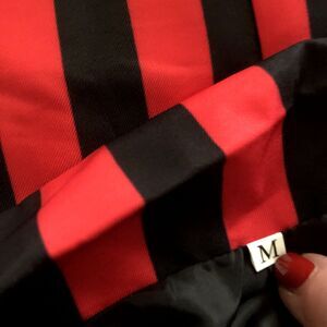 This Women's Black & Red Striped Jacket is a stylish and fun Joker costume perfect for Halloween or Batman-themed events. The short blazer-style jacket features padded shoulders for added flair and a button closure for a classic look. The black jacket with red stripes is versatile for both casual and party occasions, making it a must-have in any wardrobe. Perfect for all seasons, this jacket is a unique and eye-catching addition to any outfit.