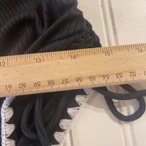 Elevate your swim style with this women’s black ribbed one-piece swimsuit in size Large. Designed with a flattering criss-cross tie back, high cut legs, and keyhole front detail, this suit blends modern style with retro charm. The ribbed fabric provides texture and a slimming effect, while the adjustable ties ensure a customized