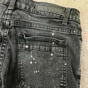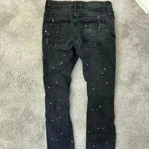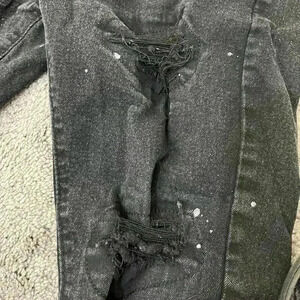 M society black ripped jeans with white splatter paint women's size 32 x 32 stretchy and skinny style