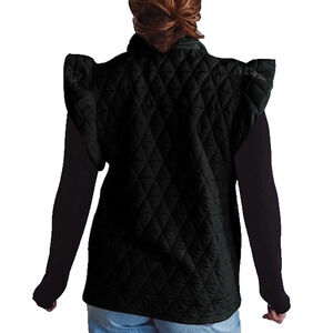Womens Black Ruffle Cap Sleeve Quilted Stretch Knit Vest Large