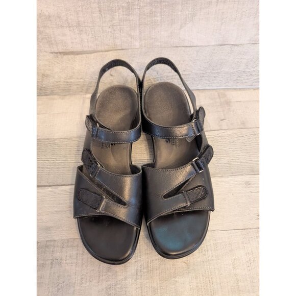 Womens Black SAS Tread Comfort Leather Tabby Slingback Sandals Size 10