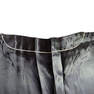 Womens Black Satin Wide-Leg Pajama Pants With Elastic Waistband