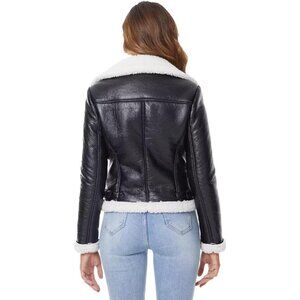 ⚡Women's Black Shearing Fur Winter Coat Warm Thick Fur Lined Faux Leather Jacket