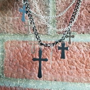 Women's Black & Silver Cross Necklace