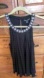 Elegant black sleeveless top featuring a stylish embroidered neckline. Double button at neckline. Pleated front. Nice draping quality for flattering appearance.