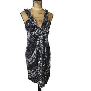 Enfocus Studio Black White Sleeveless Dress size 14 Surplice Ruffled Party Casual Dress.