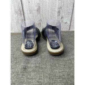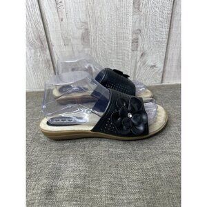 Womens Black Slide On Sandals Size 7 With Flower Rhinestone Detail Open Toe