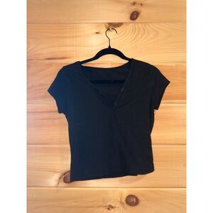 Women's black, slim fit, quarter button t-shirt. So soft, and a perfect basic for your closet. No tags, fits like a size M. Exact measurements below.