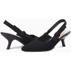 ⚡Women's Black Slingback Kitten Heels Pointed Toe Bowknot Knitted Slip On