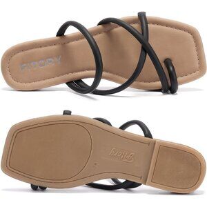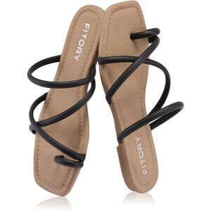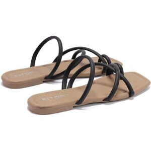 Women's Black Soft Flat Toe Ring Style Thongs Cross Strap Slide Sandal Shoes