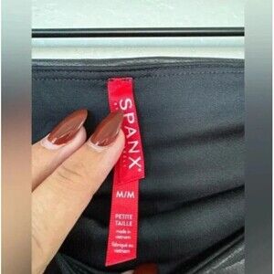 Brand: SpanxStyle: Faux Leather Leggings in BlackSize: Medium PetiteCondition: Excellent like-new condition, clean with no flaws. Very gently used.Details:- Inseam: 28 (recommended for 54 and under)- Sleek and smoothing faux leather fabric shapes and lifts- Contoured Power Waistband for core compression- Center-seam free for no more camel toe- High-waisted design
