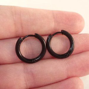 Beautiful classic design simple black hoop earrings stainless steel. Polished shine, brand new, never been worn. Lead, nickel free.