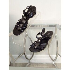 Women's Black Strictly Comfort Leather Sandal w/Rhinestone Detail Size 7