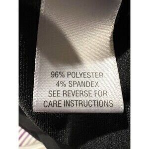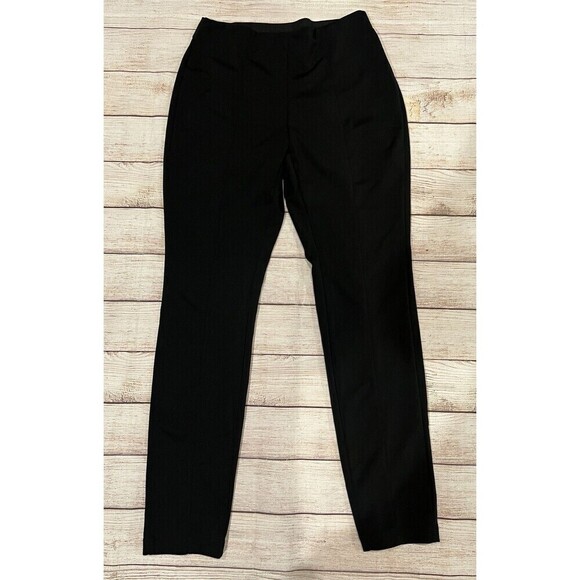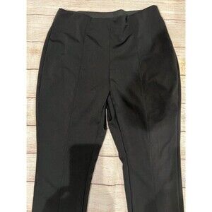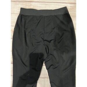 Crafted from a comfortable mix of polyester and spandex, these pants come in a size 6 and fit true to size for regular department offerings. The solid black color and timeless dress pant style ensure these will be a versatile addition to your attire, pairing seamlessly with a variety of tops and accessories. 28 elastic pull on waist, 8 rise and 29 inseam. Smoke free home.
