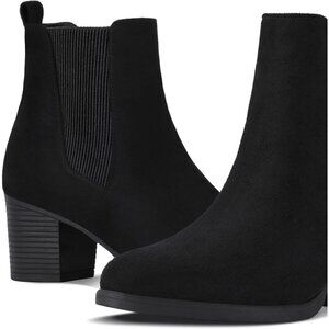 Women's Black Suede Chelsea Boots Chunky Block Heel Slip On Ankle Boots Elastic