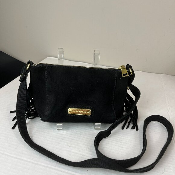 Women's Black Suede Fringed Steve Madden Crossbody Bag