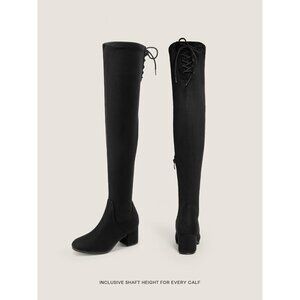 Women's Black Suede Over The Knee Thigh High Chunky Heel Long Stretch Boots