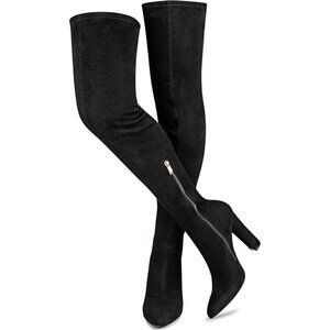 Women's Black Suede Thigh High Boots Pointed Toe Over The Knee High Winter Boot