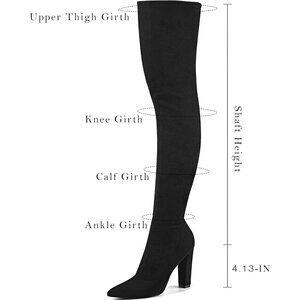 TRENDY THIGH HIGH BOOTS: Heel measures 4.13 inches(approx). The classic chunky heels and pointed toe design effortlessly combine fashion and comfort, ensuring you stay at ease wherever you go.