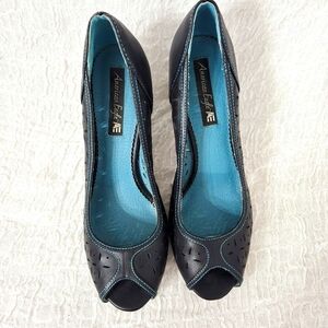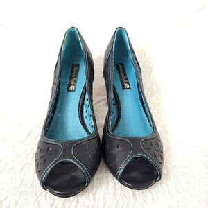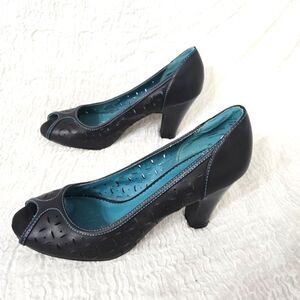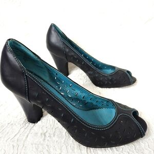 Women's Black Sz 9.5 High Heels pumps cut out design Peep Toe Officecore