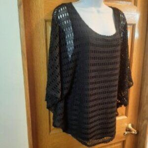 Women's Black Tank Top with attached Crocheted Poncho overlay
