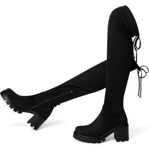 CHUNKY HEEL BOOTS WITH BOLD STYLE: These over-the-knee boots feature a sturdy 3-inch block heel and 1.6 inch platform for added height and stability, Perfect for all-day wear during fall and winter commutes or a night out