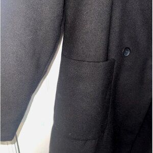 Minimalist and effortlessly cool, this Zara Basic black coat is a must-have for layering season. Designed with an oversized fit and clean lines, it features a notched lapel collar, double-breasted button closure, and roomy front patch pockets. Made from a cozy wool blend and fully lined for extra warmth and comfort.