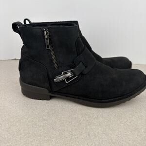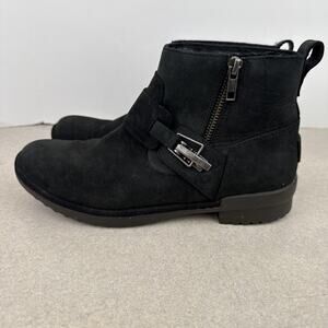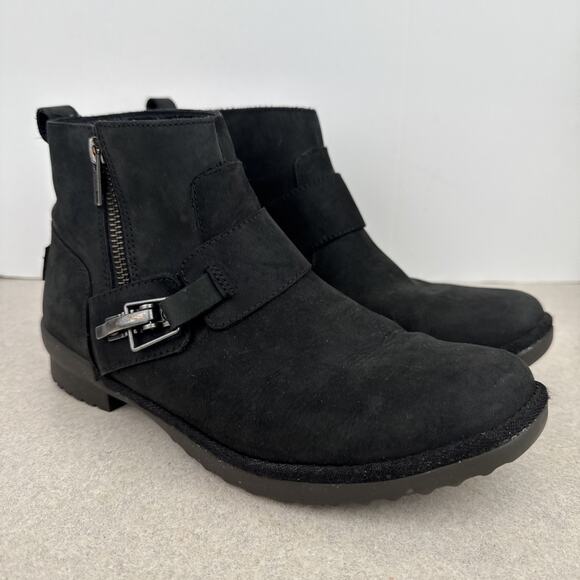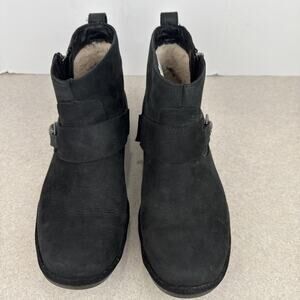 Women’s Black Ugg Cheyne Ankle Waterproof Leather Boots Buckle Size 8.5