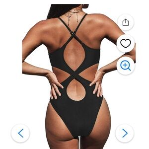 Women's Black V Neck One Piece Swimsuit Monokini NWT Size L