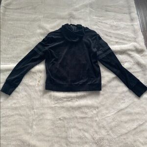 Stay cozy and stylish with this black velour hoodie sweater. Perfect for casual outings or lounging at home.