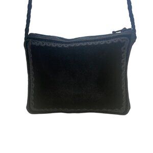 Women’s Black Velvet Floral Embroidered With Zipper Closure Crossbody Bag