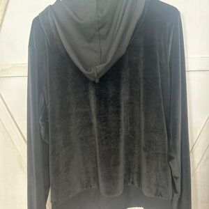 Stay stylish and comfortable with this elegant black velvet hoodie jacket. Perfect for any casual outing.