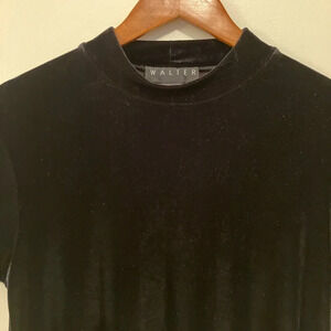 Women’s Black Velvet L Maxi Sheath Dress Short Sleeve Mock Neck Whimsygoth