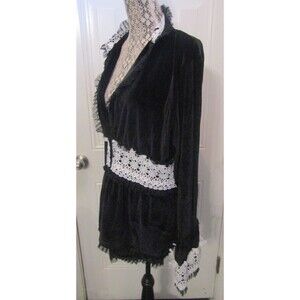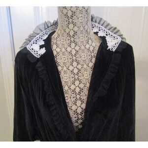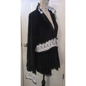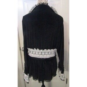 Description: Womens Black Velvet Velour and White Lace Blouse Jacket Lined Size 3XL