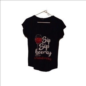 Celebrate in style with this chic black graphic tee. Perfect for casual outings.