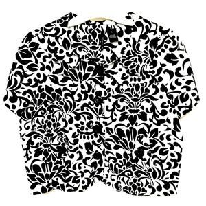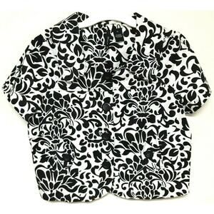 Classic black and white floral cropped shrug cardigan by New Directions. Petite Large size, button-up style with stretch for comfort. Perfect for layering over dresses, tanks, or casual outfits. Great for worship, work, or everyday wear. Excellent preowned condition, worn once.
