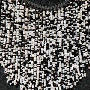 Womens Black White Glass Beaded Woven Fringe Collar Necklace with Lobster Clasp.
