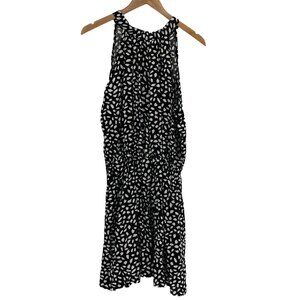 Womens Black White Sleeveless Halter Neck Knee Length A Line Dress Size Small