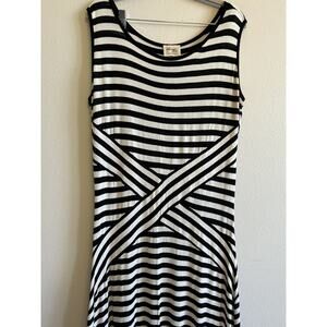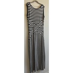 Womens Black White Striped Knit Sleeveless Maxi Dress Stretch Nautical Coverup L