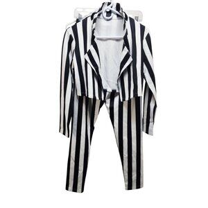 Womens Black & White Striped Two-Piece Set - Jacket & Pants Size L