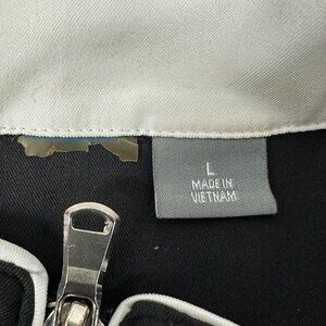 This jacket is a versatile addition to any wardrobe, offering a sleek and professional look with its contrasting black and white design. It’s crafted from 100% polyester, ensuring durability and comfort. The zip-up front provides a secure fit, making it suitable for various occasions.