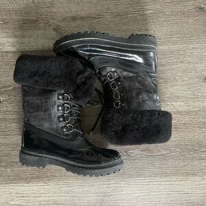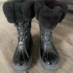 Stay warm and stylish with these black winter boots. Perfect for cold weather, these boots offer comfort and durability.