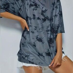 Women's Black and Gray Tie-Dye Casual Oversized T-Shirt Size Medium