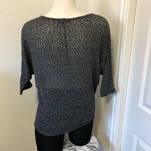 Stylish women's top in a chic black and gray pattern. Perfect for casual outings or a day at the office.