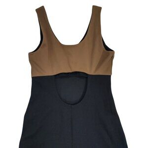 Women's Black and Tan Color Block Sleeveless Flare Leg Scoop Neck Jumpsuit, M.