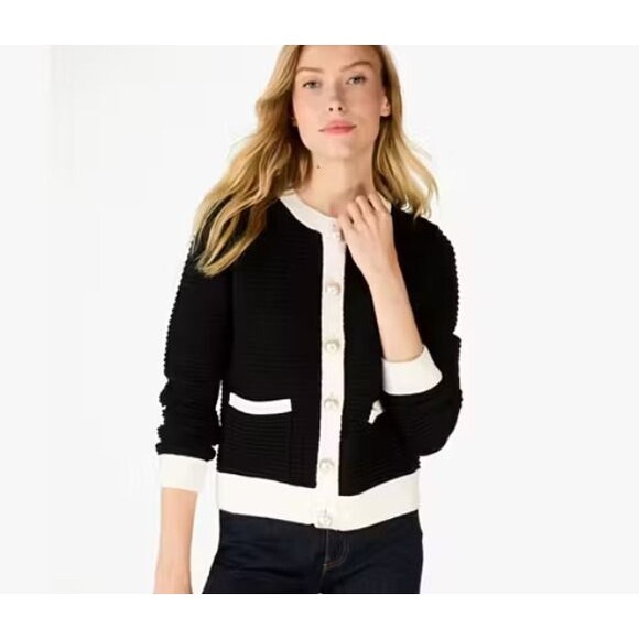 Elegant black and white cardigan sweater perfect for any occasion. Features a classic design with a comfortable fit.