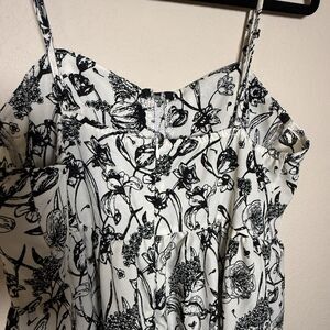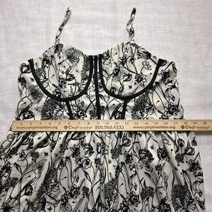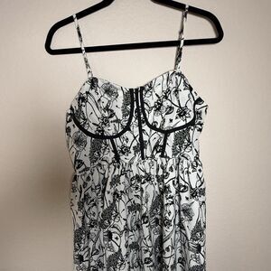 Women's Black and White Floral Structured Corset Cami Romantic Midi Dress