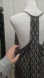 This is a black and beige geometric print tank top featuring a relaxed, flowy silhouette. The front has a soft scoop neckline with slim spaghetti straps. The standout feature is the back, where the straps lead into a wide, vertical racerback panel that extends down the center, creating a stylish open-back design with draped sides for extra movement and comfort.